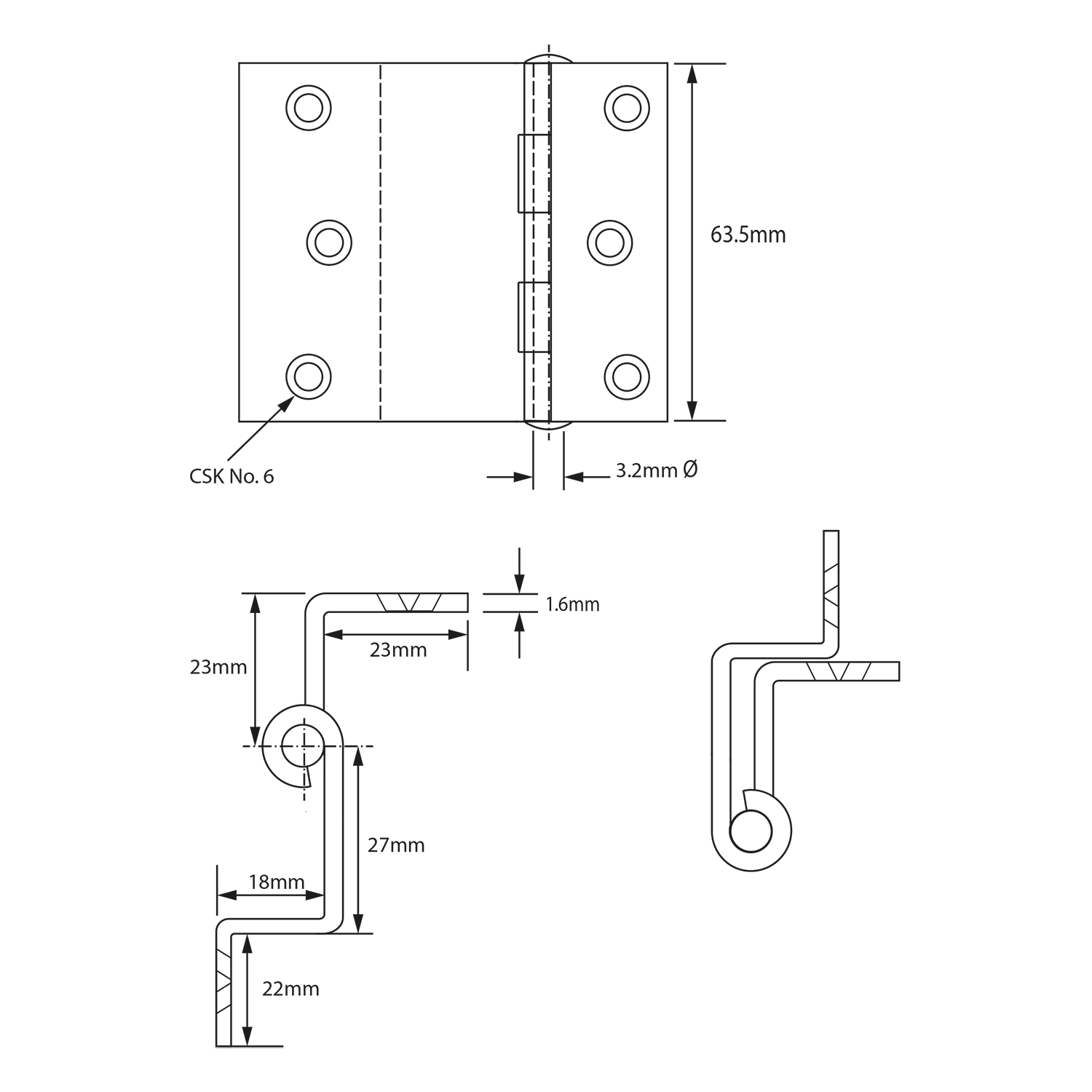 A popular cabinet hinge, with riveted pins