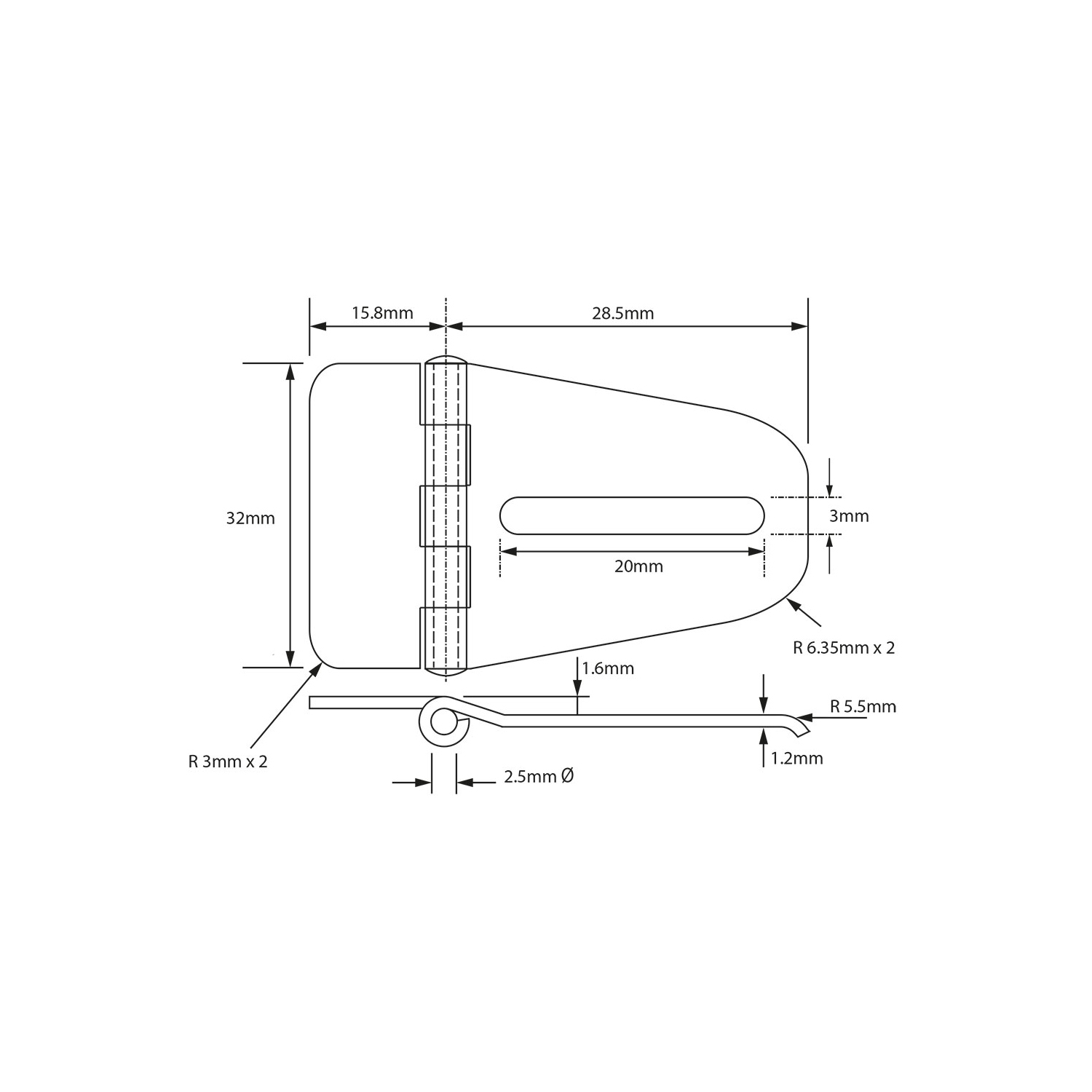 A toolbox hasp, supplied with radiused corners and weldable hinged flap