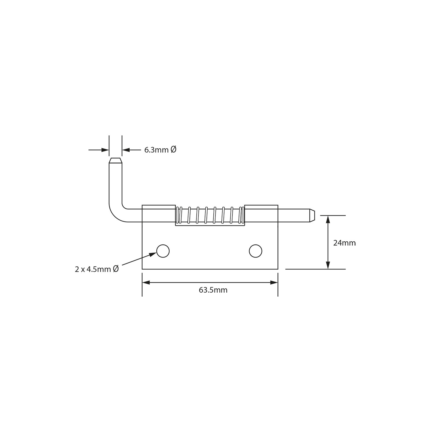 A spring bolt supplied assembled, with or without holes, in either RH or LH.