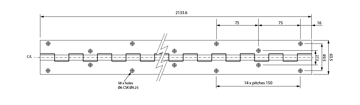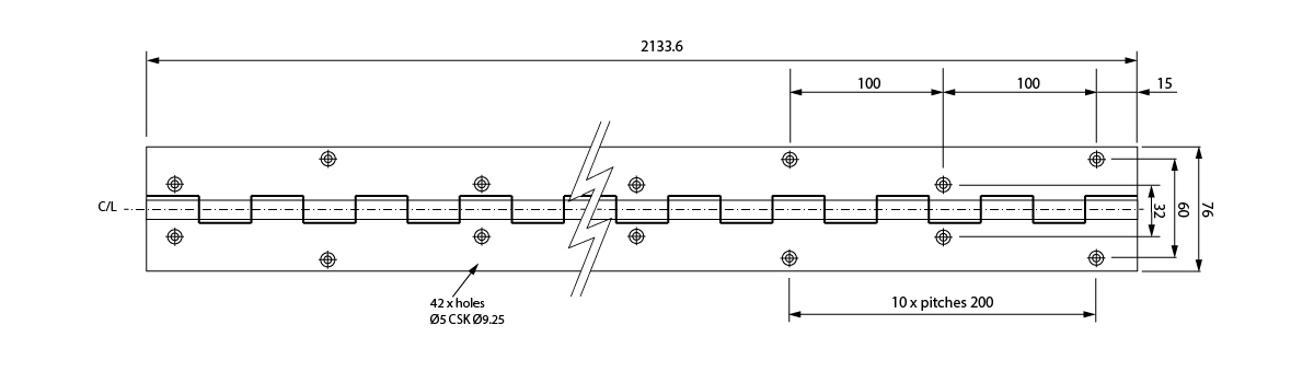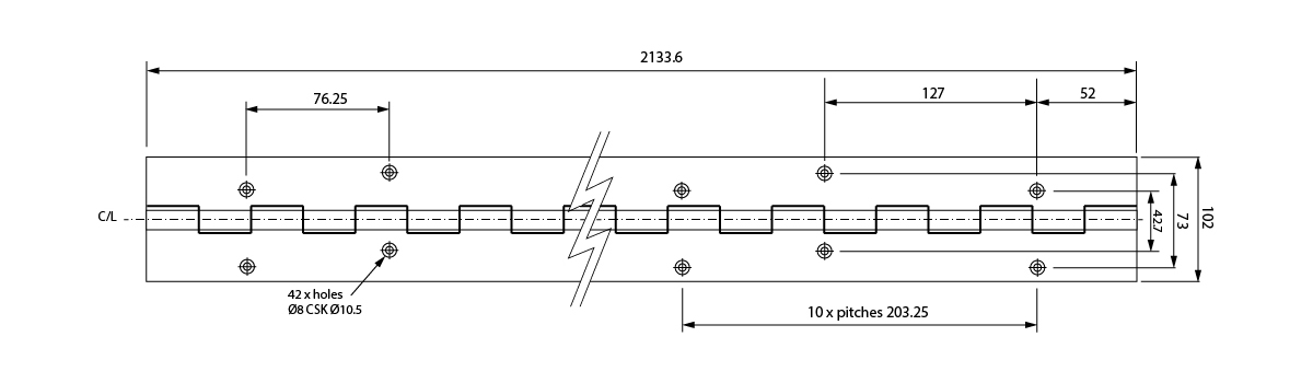 For lengths other than 84”, pitches may be adjusted to suit the specified length and to allow for a reasonable start and finish dimension. These details would be agreed with you before manufacture to ensure that you know exactly what you will receive.